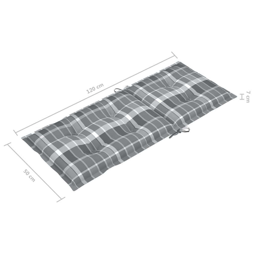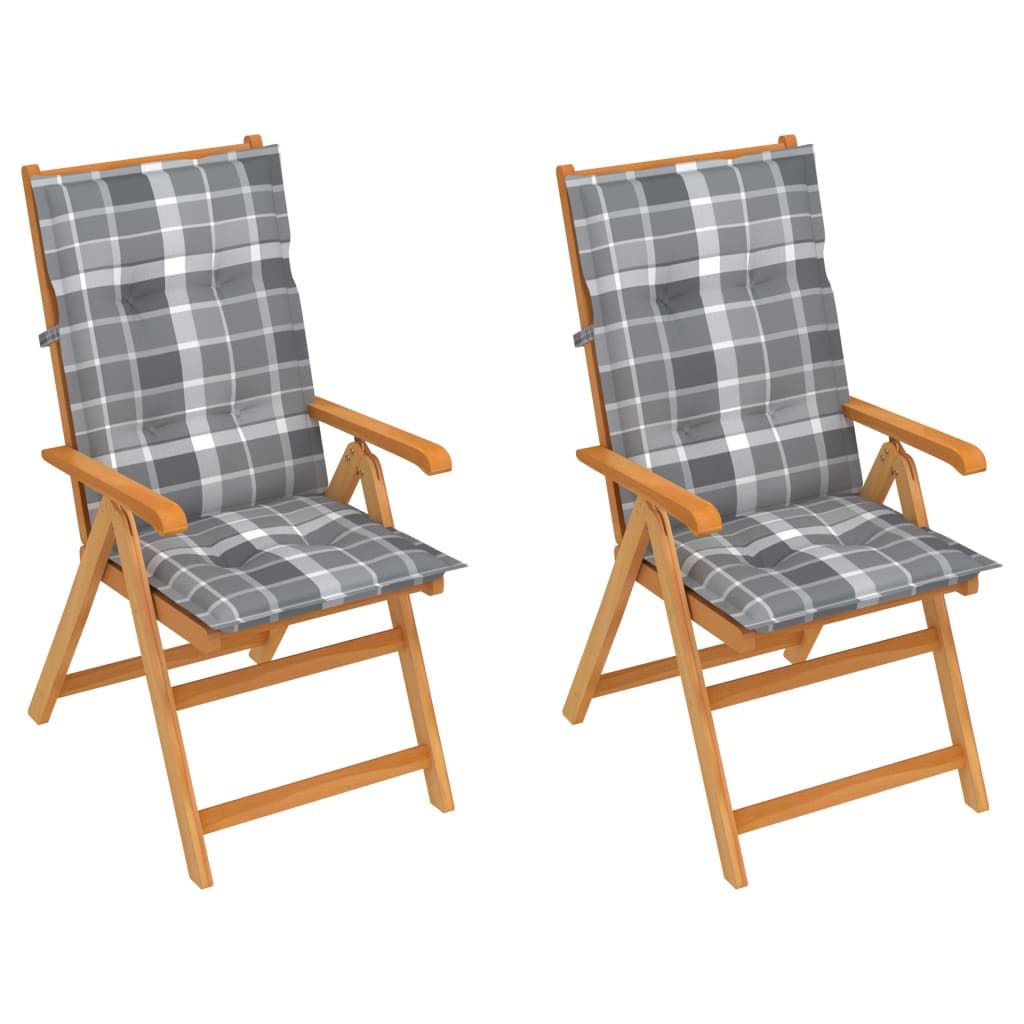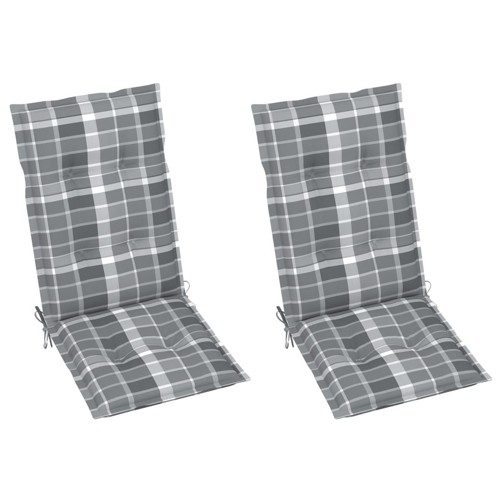 Krzesła ogrodowe, 2 szt., z poduszkami w szarą kratę, tekowe
