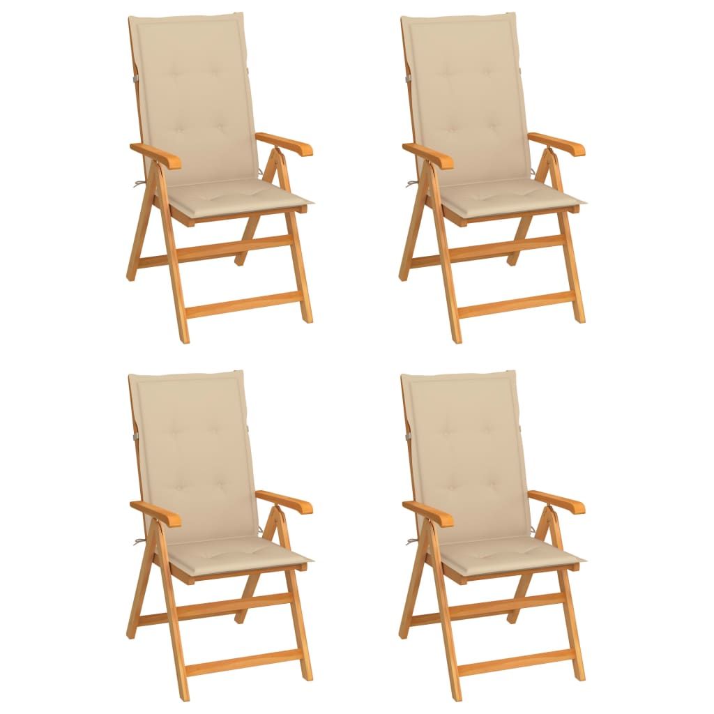 Krzesła ogrodowe, 4 szt., beżowe poduszki, drewno tekowe