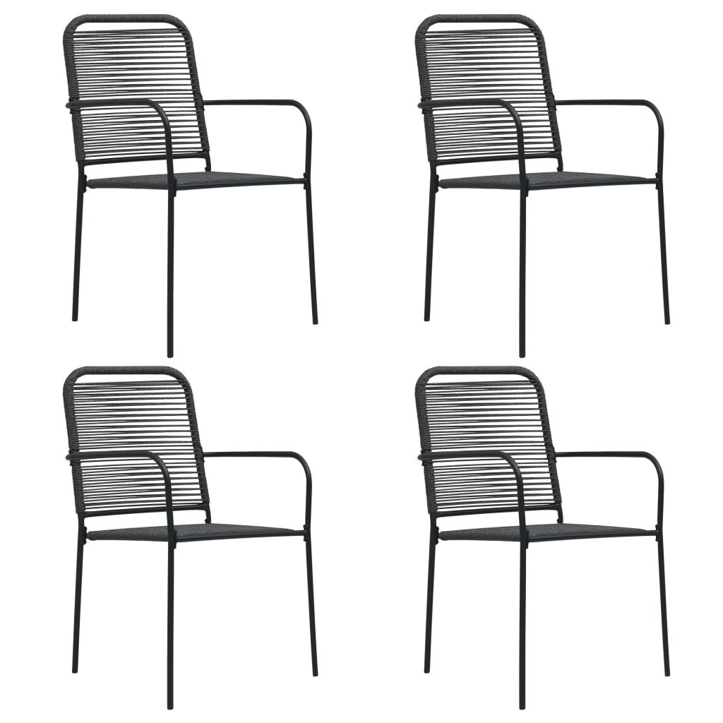 Krzesła ogrodowe, 4 szt., sznurek bawełniany i stal, czarne