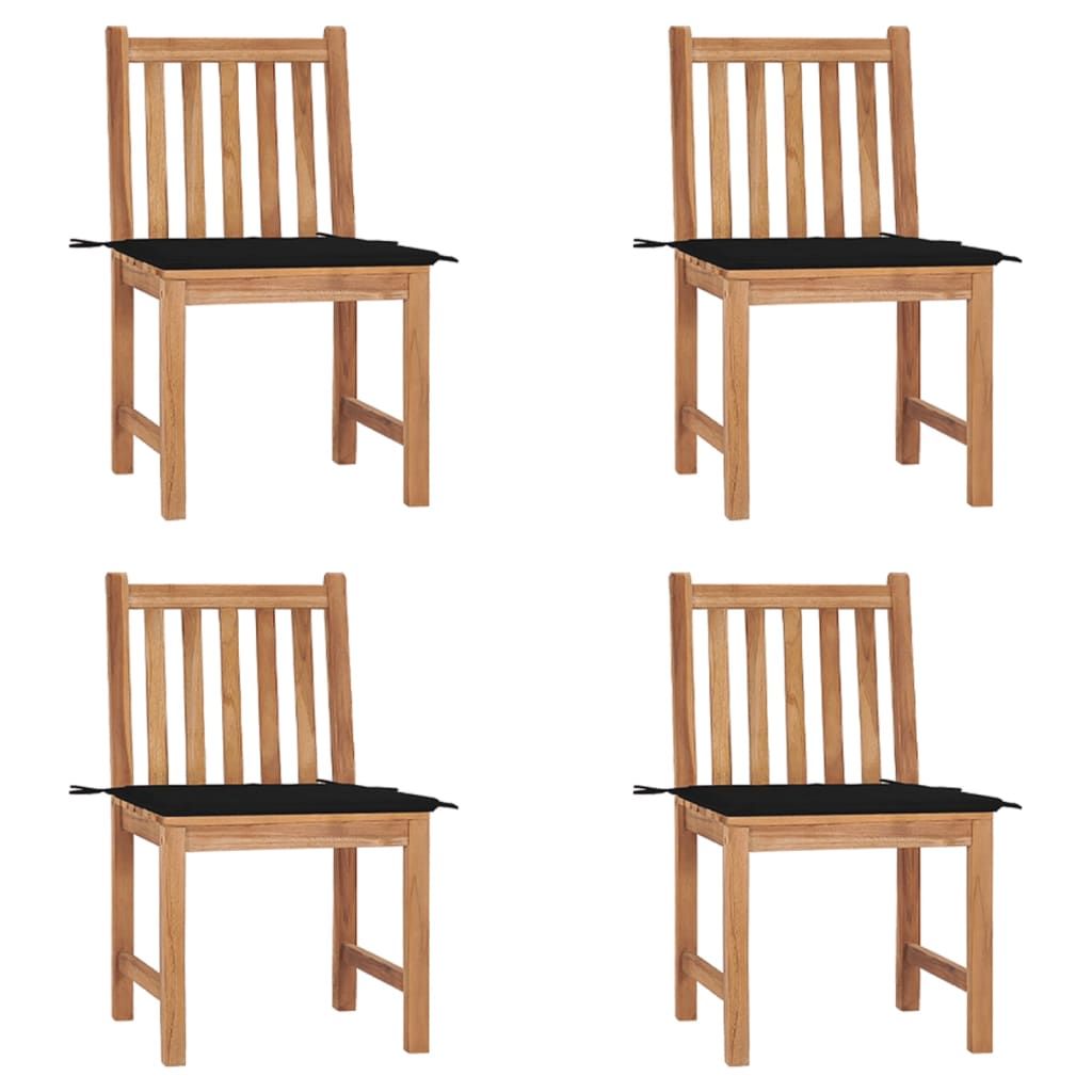 Krzesła ogrodowe, 4 szt., z poduszkami, lite drewno tekowe