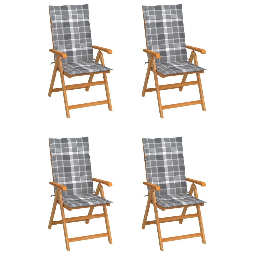 Krzesła ogrodowe, 4 szt., z poduszkami w szarą kratkę, tek