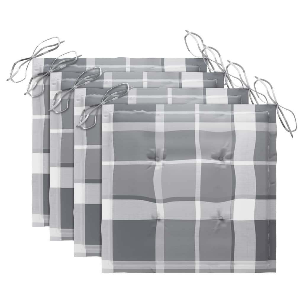 Krzesła ogrodowe, 4 szt., z poduszkami w szarą kratkę, tekowe