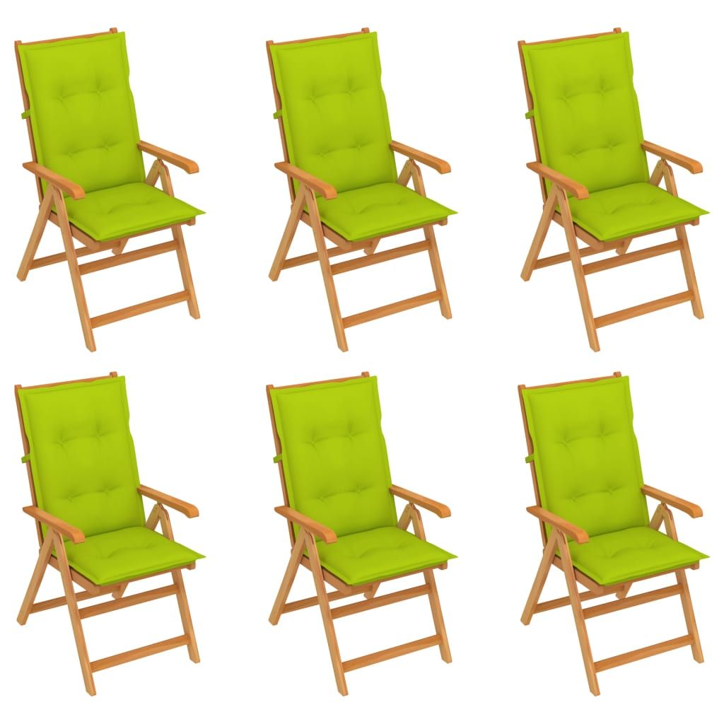 Krzesła ogrodowe, 6 szt., jasnozielone poduszki, drewno tekowe