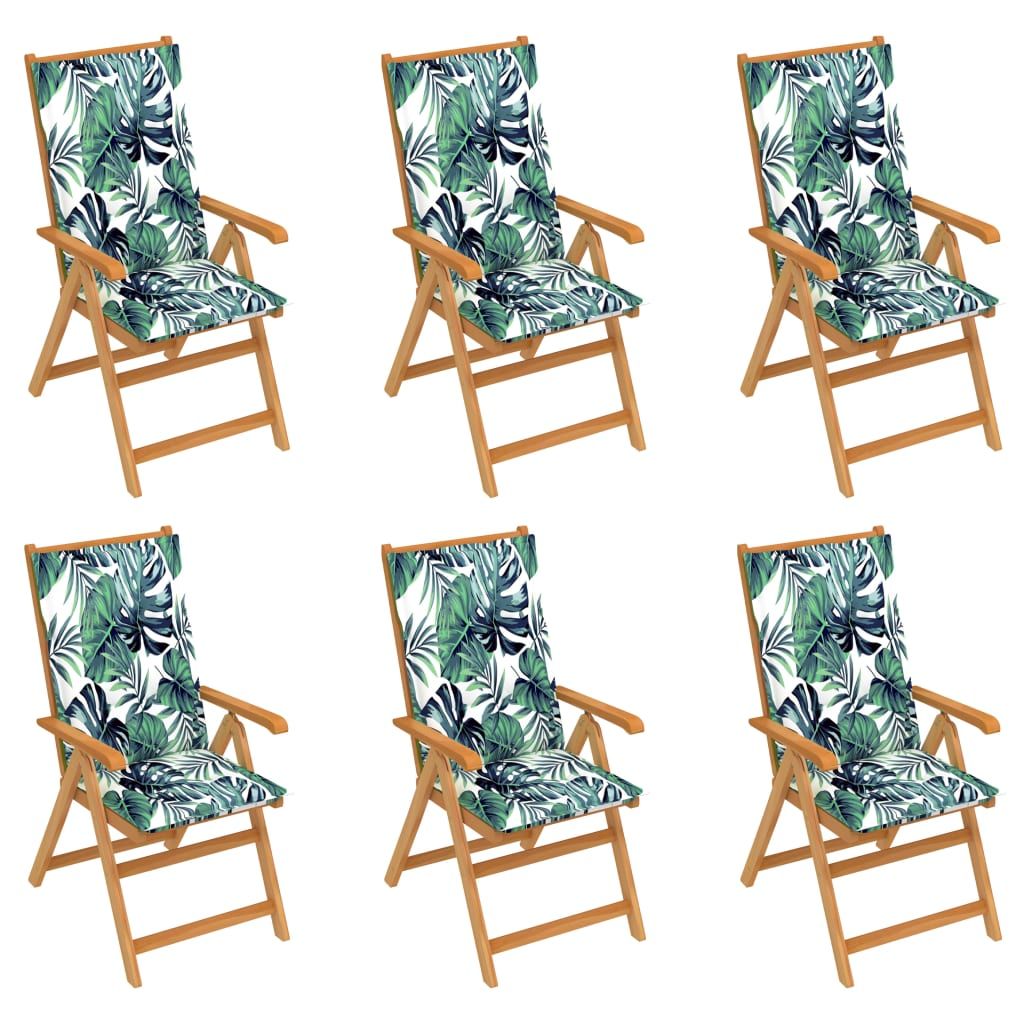 Krzesła ogrodowe, 6 szt., z poduszkami w liście, drewno tekowe