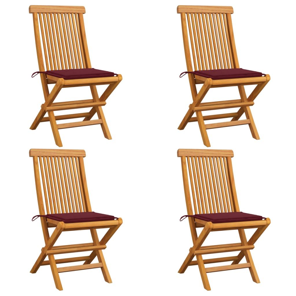 Krzesła ogrodowe, czerwone poduszki, 4 szt., drewno tekowe