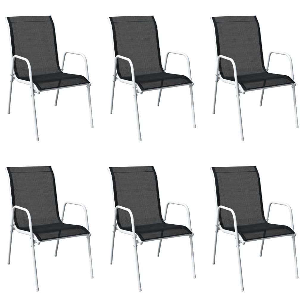 Krzesła ogrodowe, sztaplowane, 6 szt., stal i Textilene, czarne