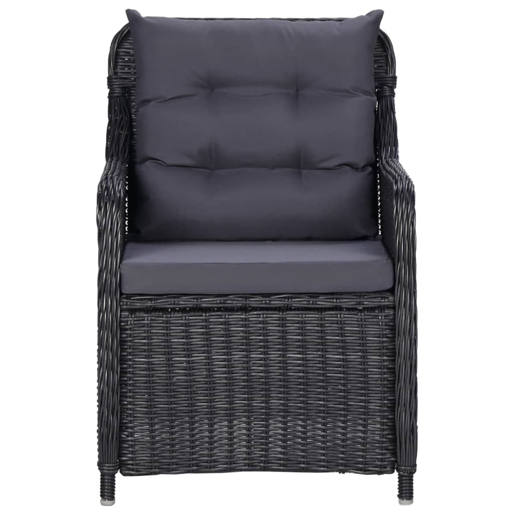 Krzesła ogrodowe z poduszkami, 2 szt., polirattan, czarne