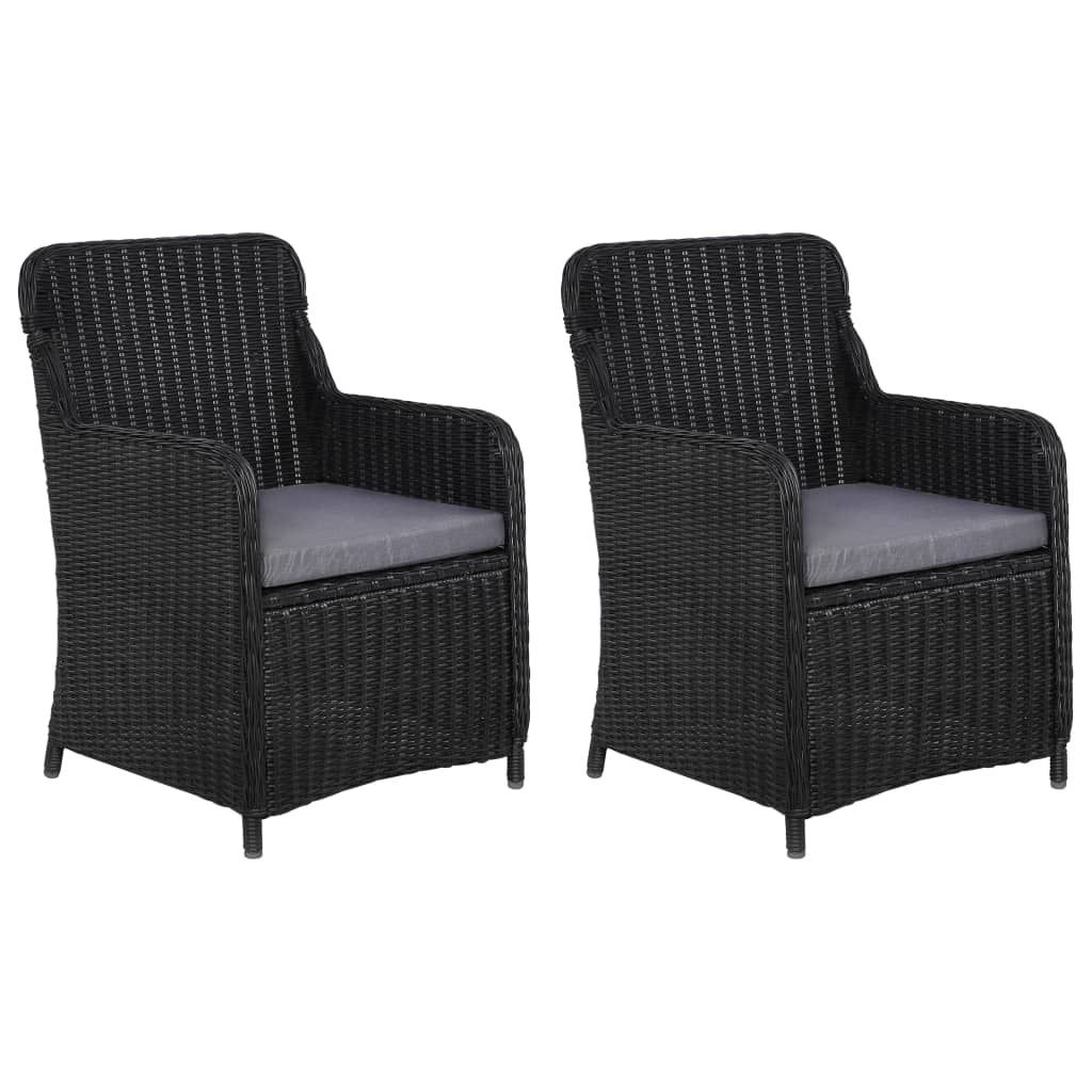 Krzesła ogrodowe z poduszkami, 2 szt., polirattan, czarne