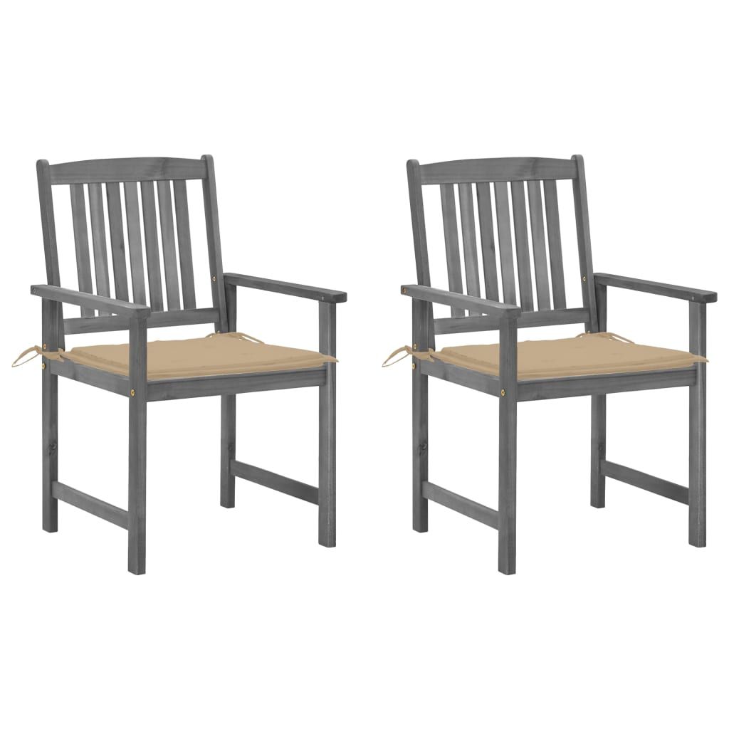 Krzesła ogrodowe z poduszkami, 2 szt., szare, akacjowe
