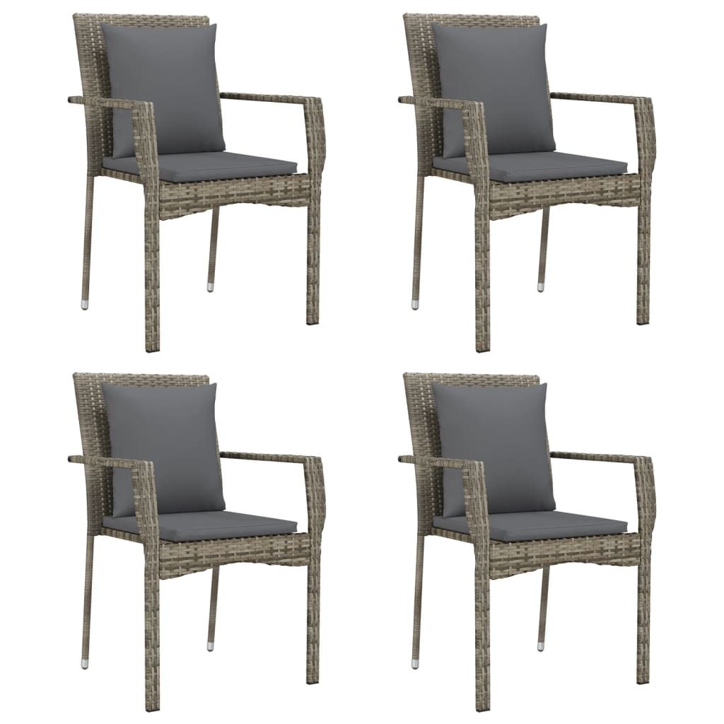 Krzesła ogrodowe z poduszkami, 4 szt., polirattan, szare