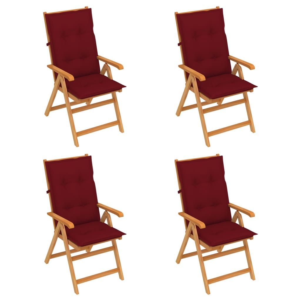 Krzesła ogrodowe z poduszkami w kolorze wina, 4 szt., tekowe