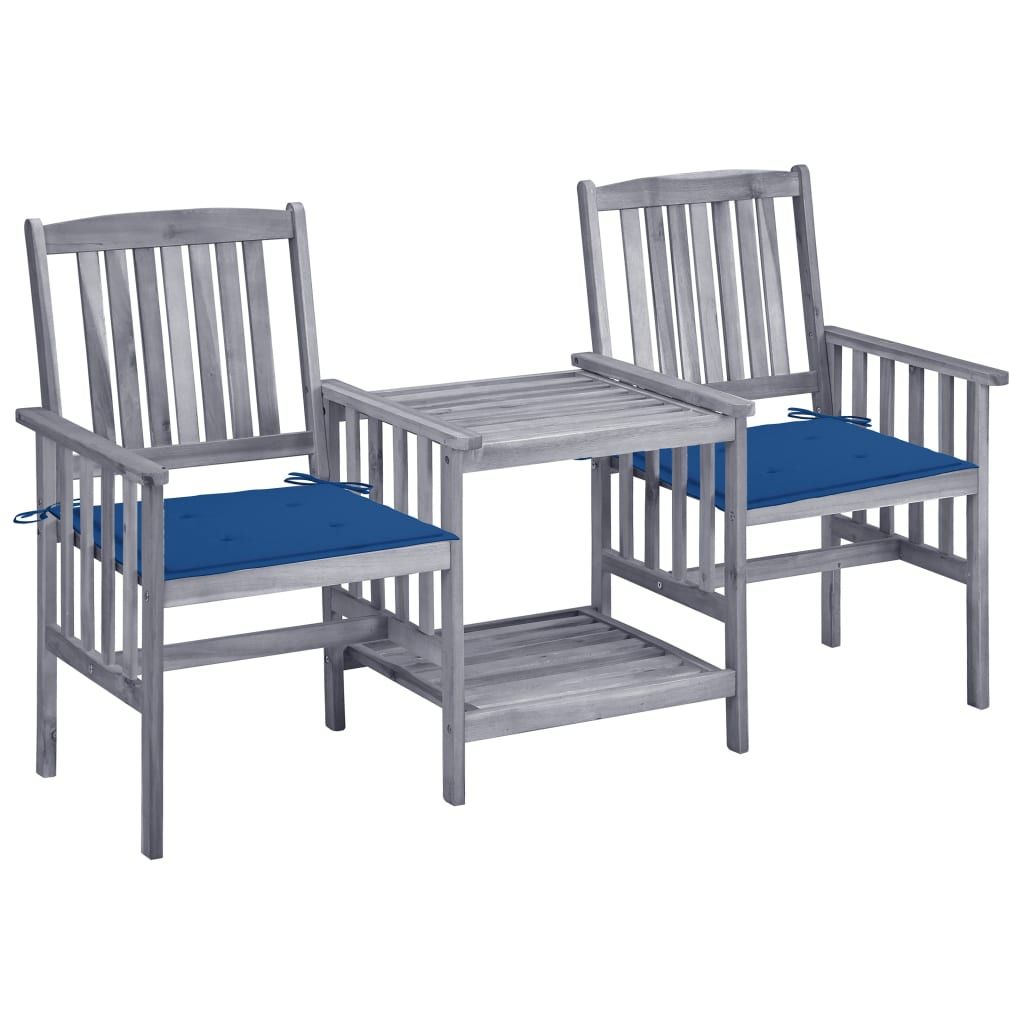 Rozkoszuj się wspaniałym czasem na herbatę przy tych rustykalnych krzesłach ogrodowych ze stolikiem herbacianym. Będzie to naprawdę wygodny w użytkowaniu i przyciągający wzrok dodatek do Twojego ogrodu i patio. Stolik i krzesła wykonano z litego drewna akacjowego, dzięki czemu są niezwykle trwałe i wytrzymałe. Solidny blat i dolna półka idealnie nadają się do przechowywania filiżanek, książek i innych drobiazgów. Oparcia i podłokietniki krzeseł zapewniają wygodę podczas siedzenia. Poduszki zaś zapewniają większy komfort. Każda poduszka zawiera dwa zestawy sznurków do przymocowania jej do siedziska. Uwaga: aby przedłużyć żywotność mebli ogrodowych, zalecamy zabezpieczenie ich wodoodpornym pokrowcem.