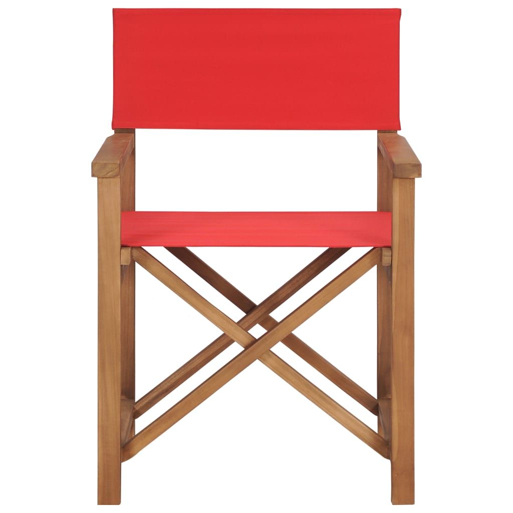 Krzesła reżyserskie, 2 szt., lite drewno tekowe, czerwone