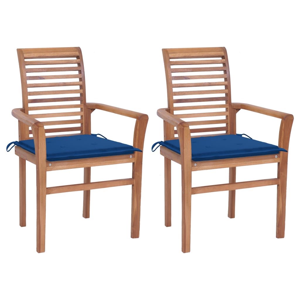 Krzesła stołowe, 2 szt., kobaltowe poduszki, drewno tekowe