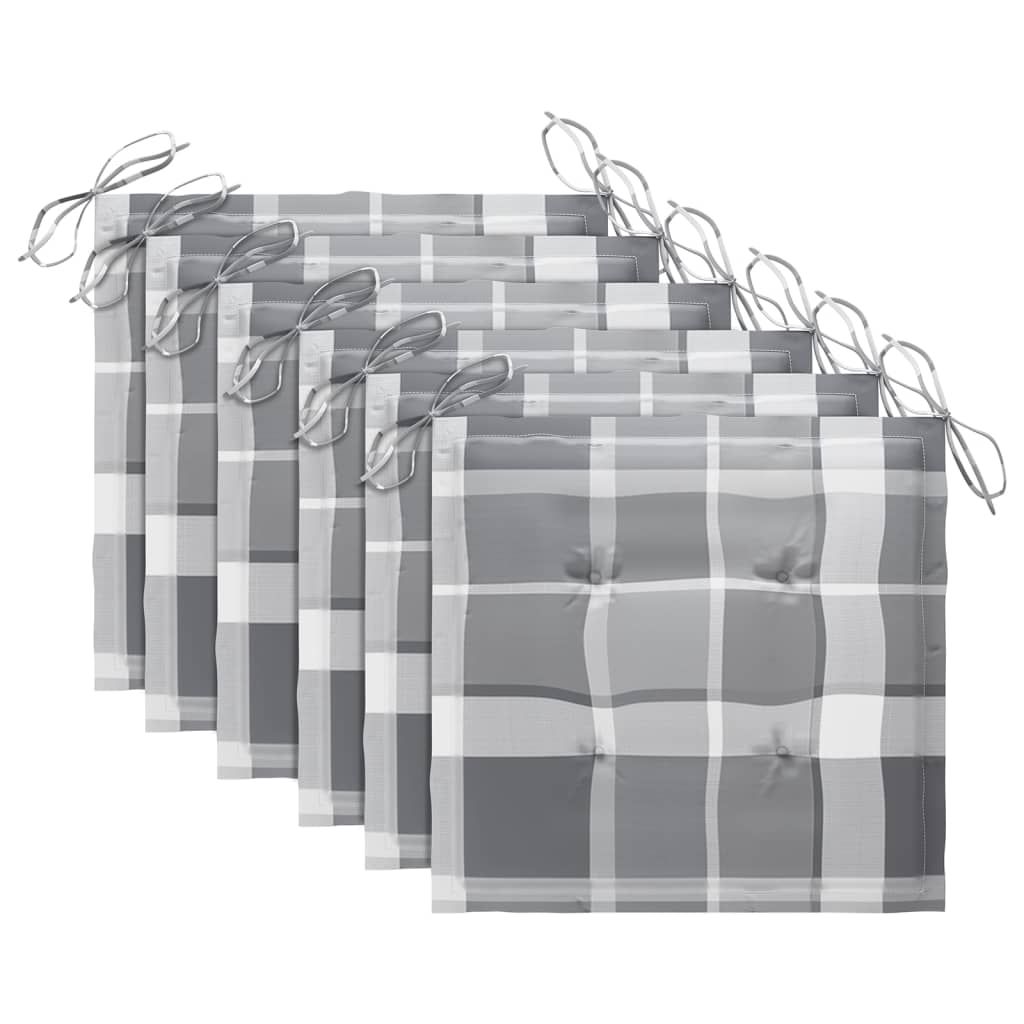 Krzesła stołowe z poduszkami w szarą kratę, 6 szt., tekowe