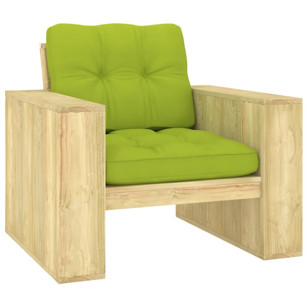 Krzesło ogrodowe z jasnozielonymi poduszkami, drewno sosnowe