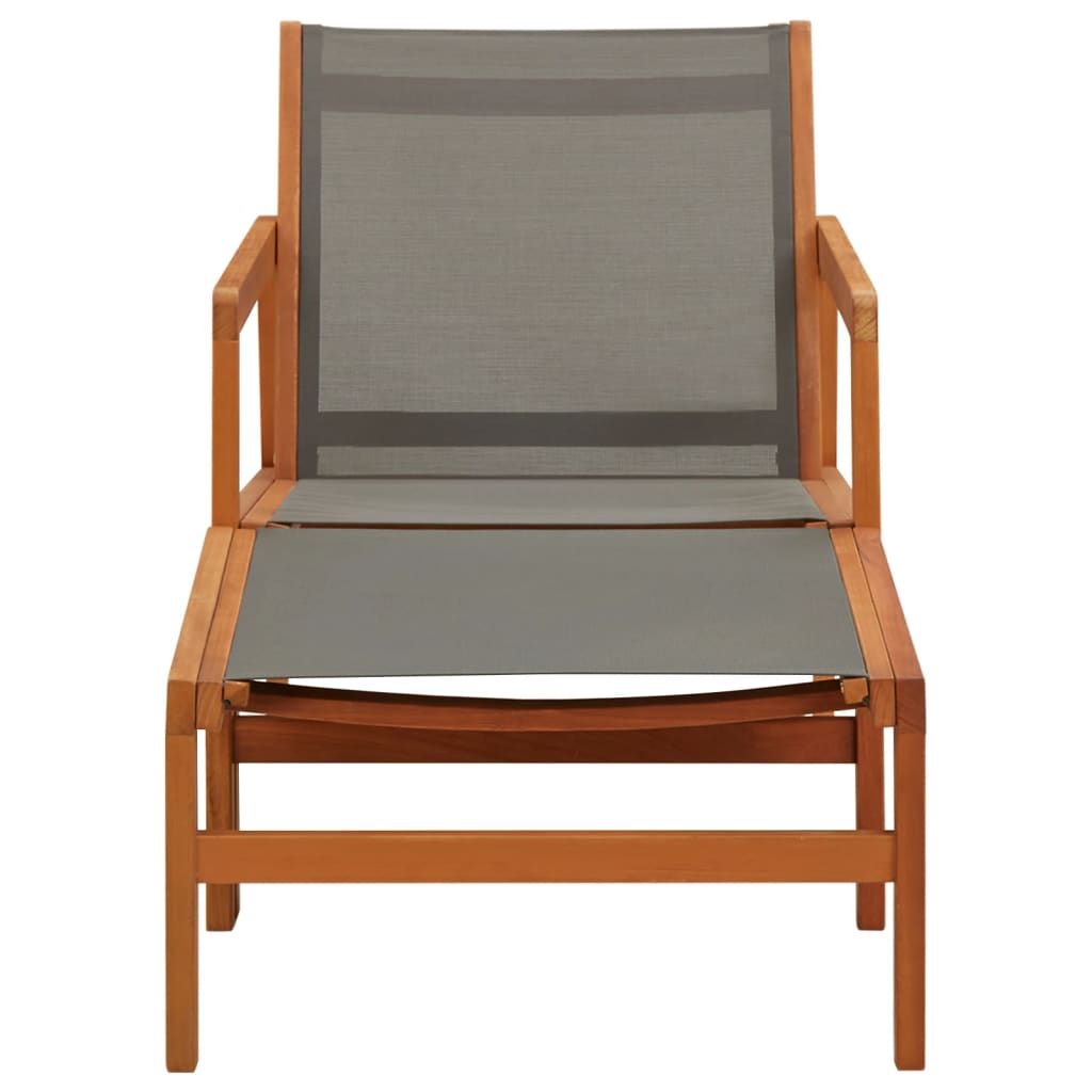 Krzesło ogrodowe z podnóżkiem, szare, eukaliptus i textilene