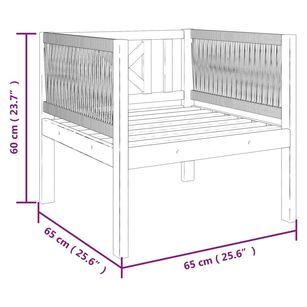 Opis produktu: Praktyczny i rustykalny design tych drewnianych krzeseł ozdobi Twój salon na świeżym powietrzu! Krzesło charakteryzuje się niezwykłą wytrzymałością, a dzięki zastosowaniu drewna akacjowego sprawdzi się do użytku na zewnątrz. Za sprawą charakterystycznej konstrukcji z wykorzystaniem linki siedzisko na zewnątrz przyciągają wzrok. Dodatkowo krzesło ogrodowe jest lekkie i łatwe do przenoszenia. Grubo wyściełane poduszki oferują komfort siedzenia. Zrelaksuj się i ciesz czasem wolnym na tym uroczym krześle!