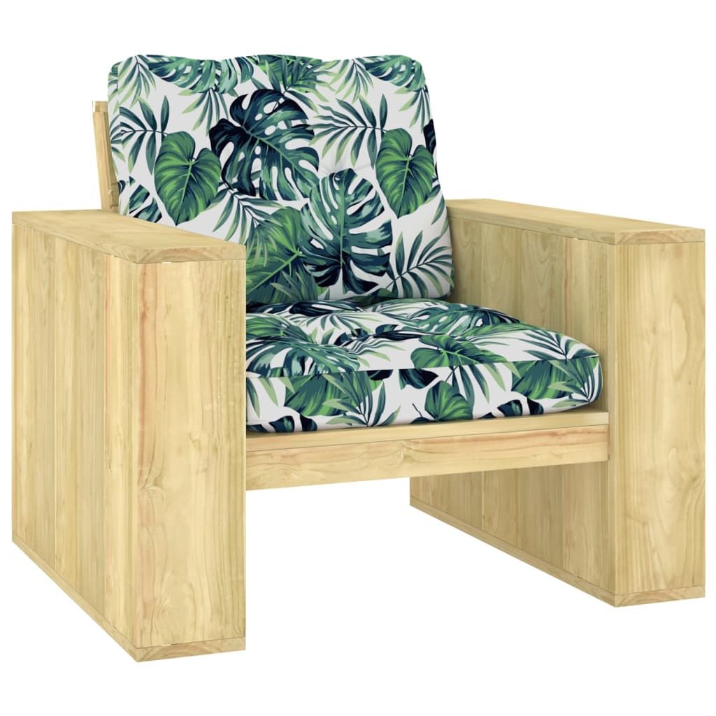Krzesło ogrodowe z poduszkami w liście, impregnowana sosna