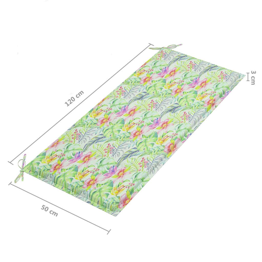 Ławka Batavia z poduszką w liście, 120 cm, lity tek