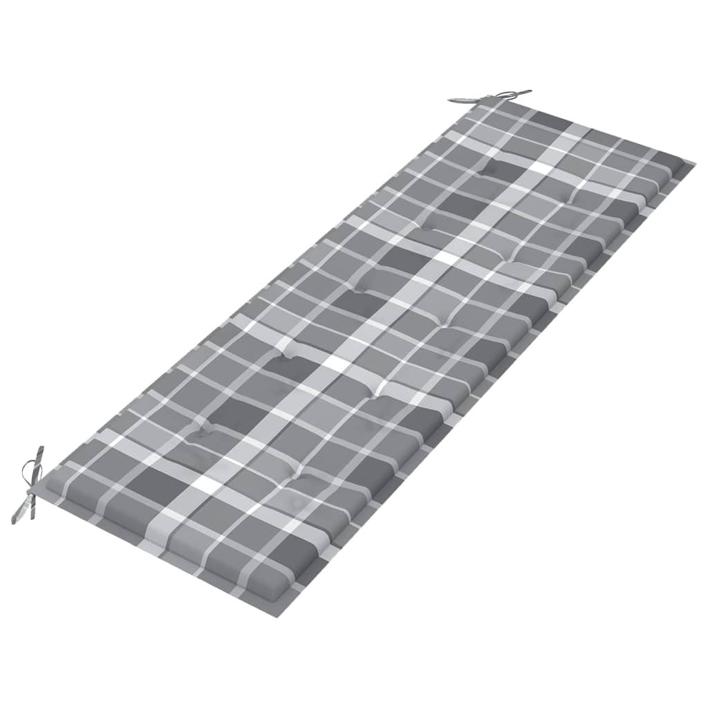 Ławka Batavia z poduszką w szarą kratę, 150 cm, lity tek