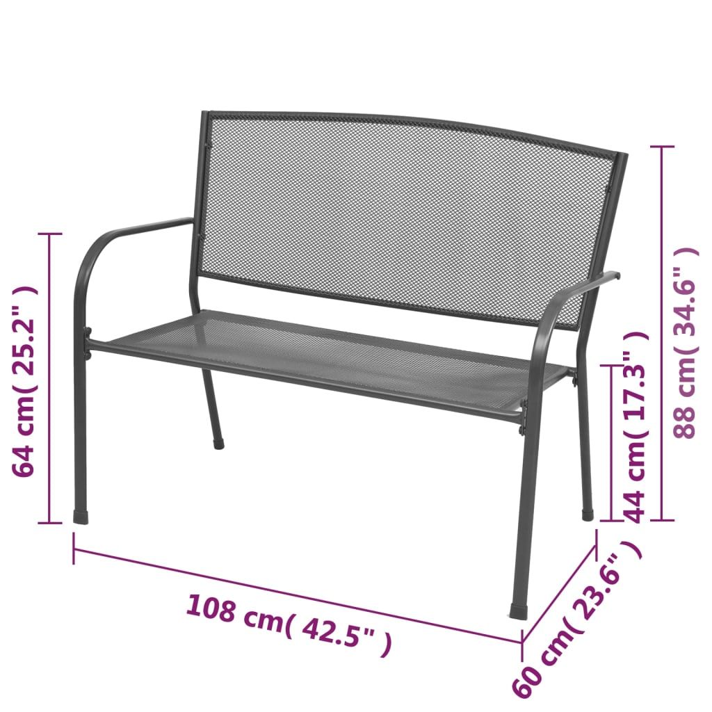 Ławka ogrodowa, 108 cm, stal i siatka, antracytowa