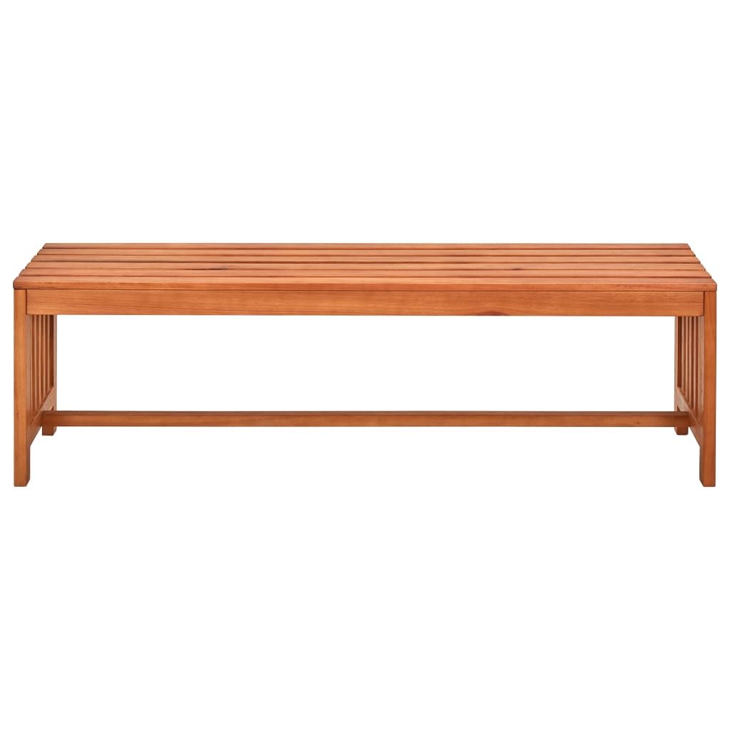 Opis produktu: Drewniana ławka wprowadzi nieco naturalnego uroku do Twojej przestrzeni na świeżym powietrzu! Stanie się głównym punktem Twojego ogrodu, tarasu lub patio. Ławkę wykonano z litego drewna eukaliptusowego, które jest odporne na warunki pogodowe i trwałe na lata. Wykończoną olejem powierzchnię można bez trudu wyczyścić wilgotną ściereczką. Produkt jest łatwy w montażu.