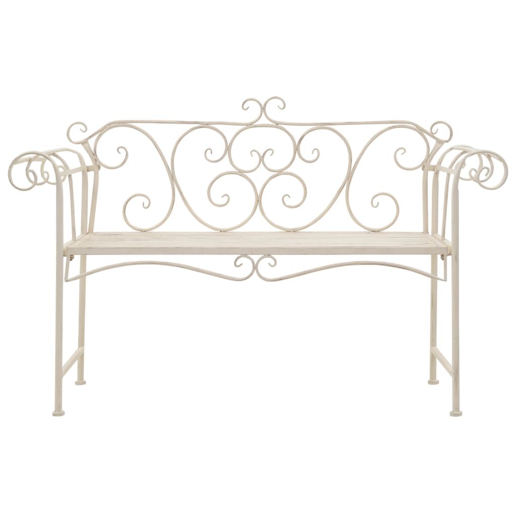 Ławka ogrodowa, 132 cm, metalowa, antyczna biel
