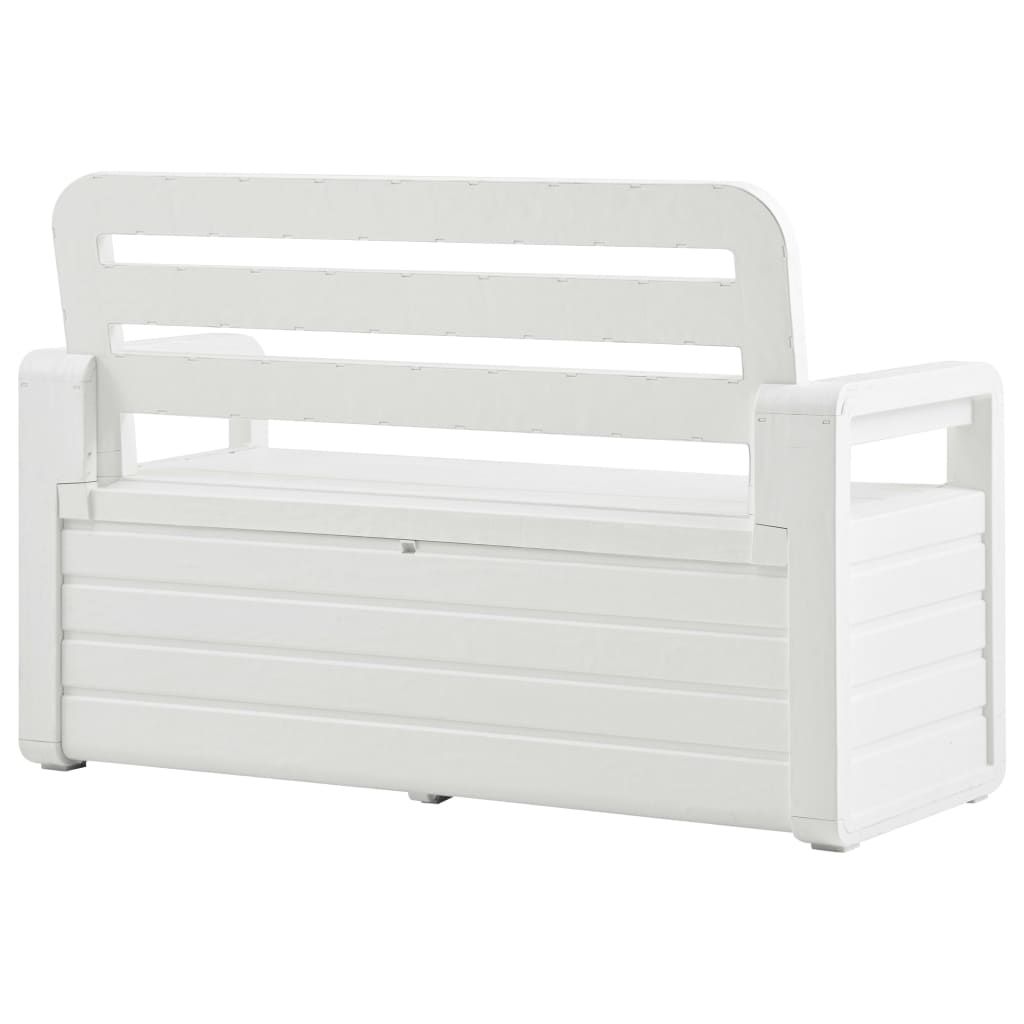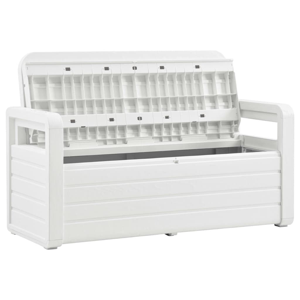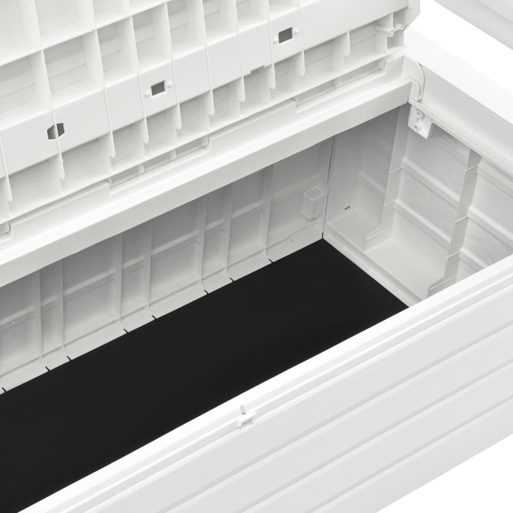 Ta ławka ogrodowa ze schowkiem sprawi, że Twój pokój lub ogród będzie uporządkowany i efektowny! Ta ławka do przechowywania jest wykonana z tworzywa sztucznego z wykończeniem stylizowanym na drewno, dzięki czemu można ją łatwo czyścić wilgotną ściereczką. Posiada zamykany schowek o pojemności 263 L pod siedziskiem. Może służyć do przechowywania artykułów gospodarstwa domowego, zbędnych narzędzi ogrodniczych czy pokrowców na meble. Dzięki lekkiej konstrukcji ławka ogrodowa jest również łatwa do przesuwania.