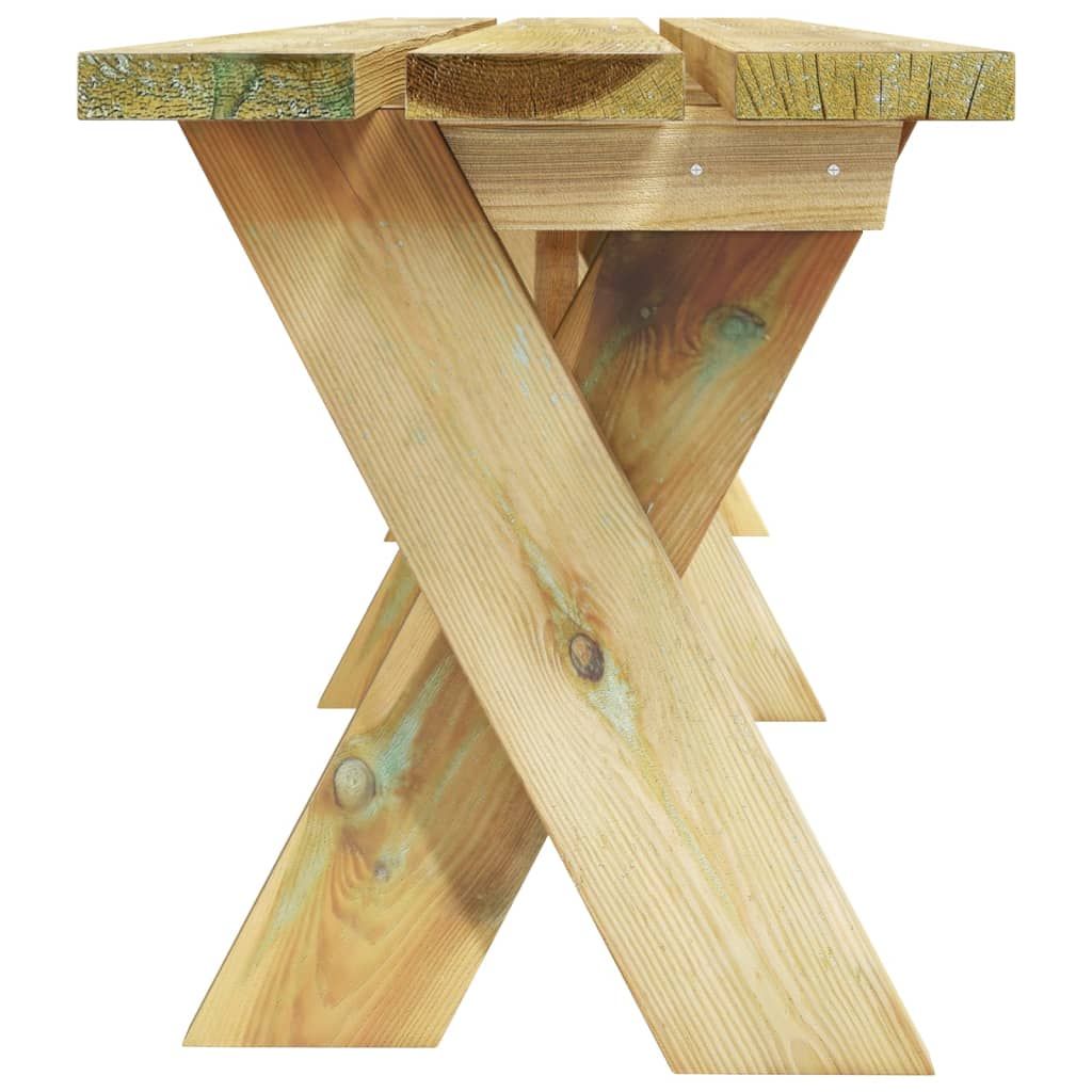 Drewniana ławka ogrodowa to idealny wybór na relaks i spędzanie wolnego czasu na świeżym powietrzu z przyjaciółmi lub rodziną. Wykonano ją z impregnowanego drewna sosnowego, dzięki czemu jest trwała i odporna na korozję. Tym samym świetnie nadaje się do użytku na zewnątrz. Z pewnością docenisz spędzanie czasu wolnego na tej ławce ogrodowej! Uwaga: aby przedłużyć żywotność mebli ogrodowych, zalecamy ich regularne czyszczenie i niepozostawianie na zewnątrz bez właściwego zabezpieczenia.Czyszczenie: użyj roztworu wody z delikatnym detergentem.Przechowywanie: jeżeli to możliwe, przechowuj produkt w chłodnym i suchym miejscu, najlepiej w pomieszczeniu. Jeśli ma on być przechowywany na zewnątrz, należy go zabezpieczyć wodoszczelnym pokrowcem. Po deszczu lub śniegu usuń nadmiar wody lub śniegu z płaskich powierzchni i osusz je. Zapewnij wystarczającą cyrkulację powietrza, aby uniknąć uszkodzeń spowodowanych przez wilgoć.