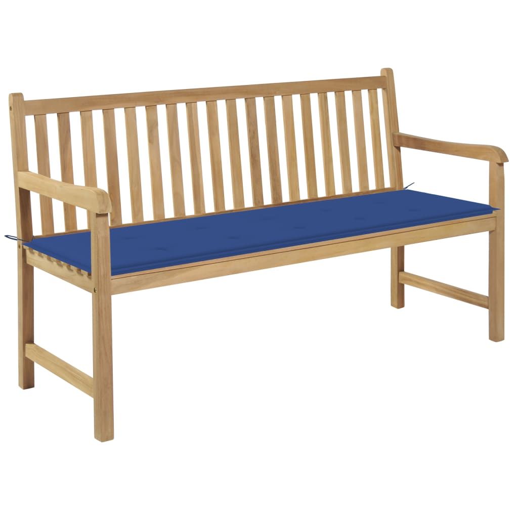 Ławka ogrodowa z kobaltową poduszką, 150 cm, drewno tekowe