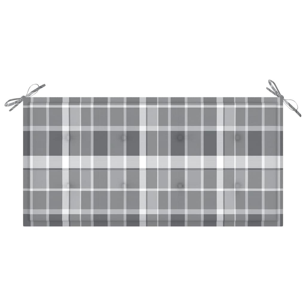 Ławka ogrodowa z poduszką w szarą kratę, 112 cm, drewno tekowe