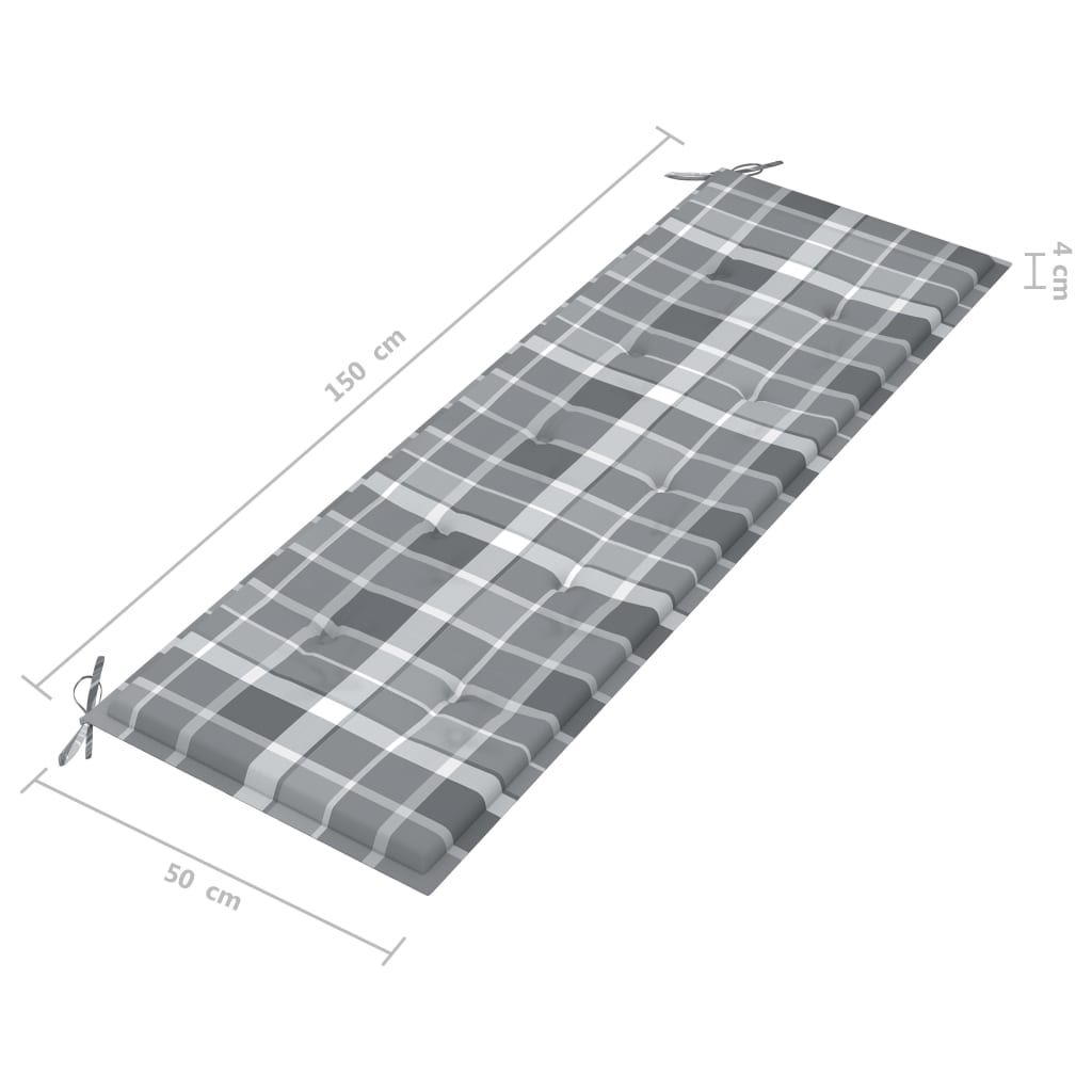 Ławka ogrodowa z poduszką w szarą kratę, 150 cm, drewno tekowe