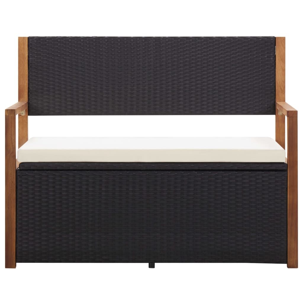 Ławka ze schowkiem, 115 cm, rattan PE i drewno akacjowe, czarna