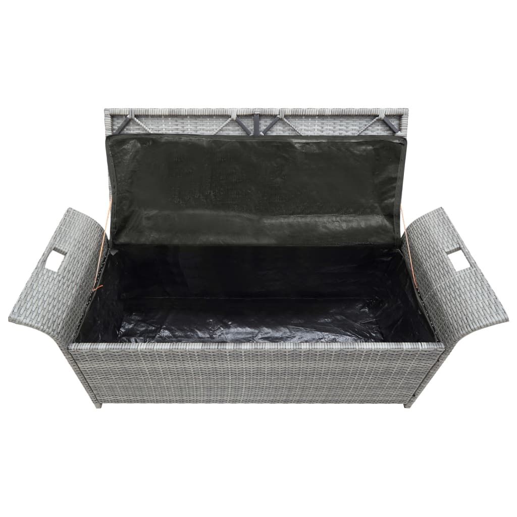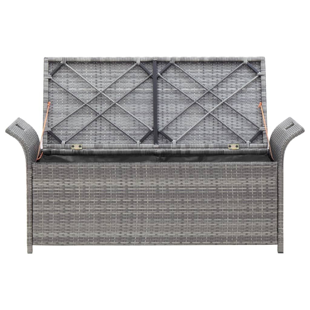 Ławka ze schowkiem i poduszką, szara, 138 cm, polirattan