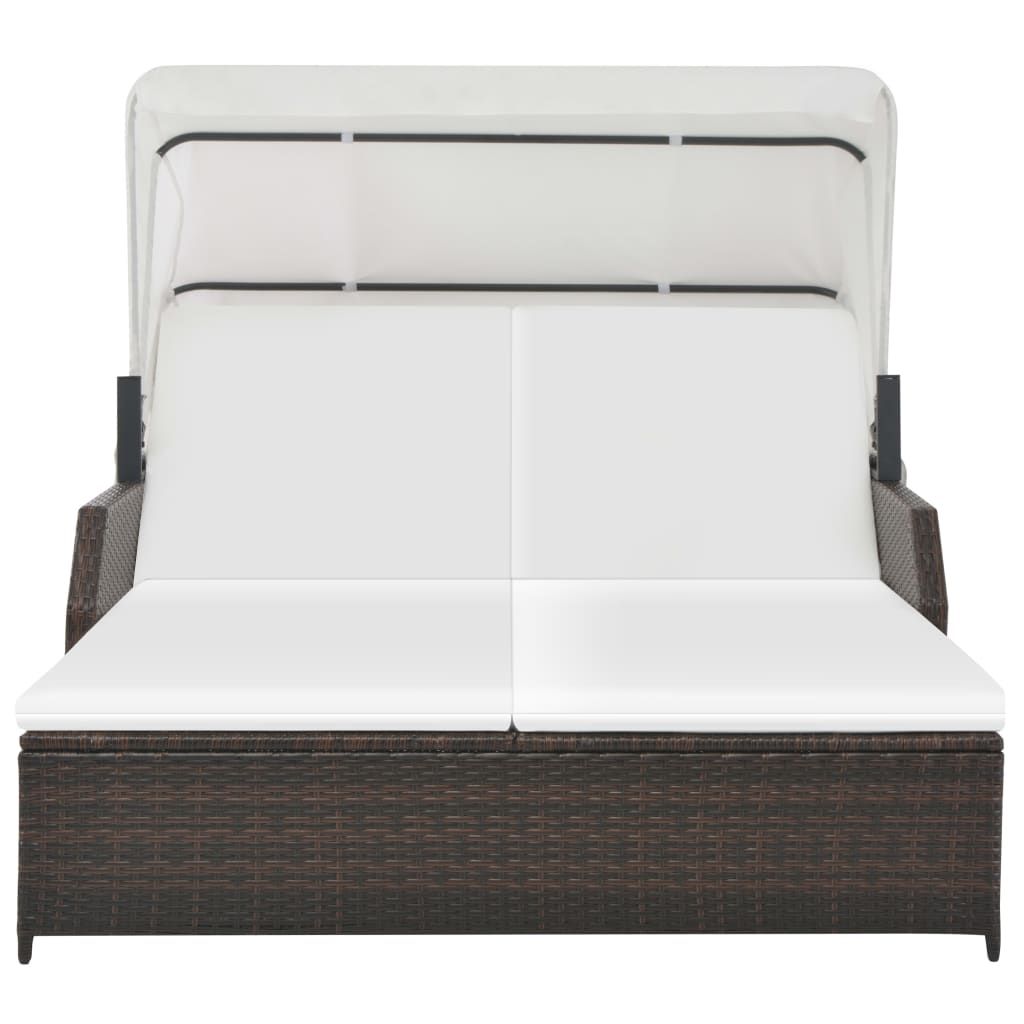 Leżak dwuosobowy z zadaszeniem, polirattan, brązowy