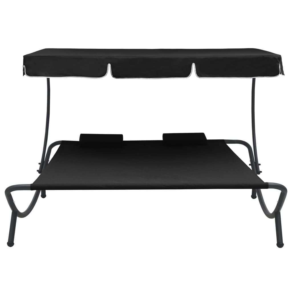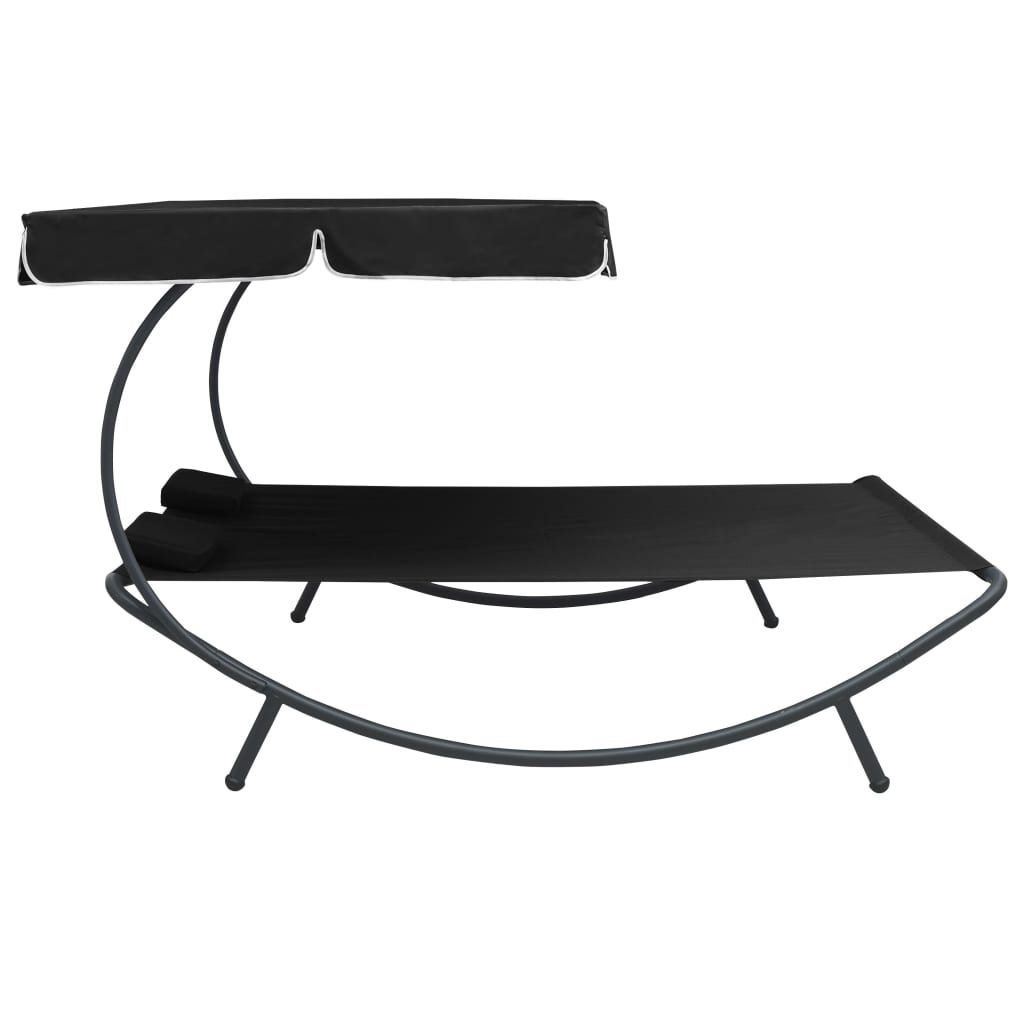 Leżak ogrodowy z baldachimem i poduszkami, czarny