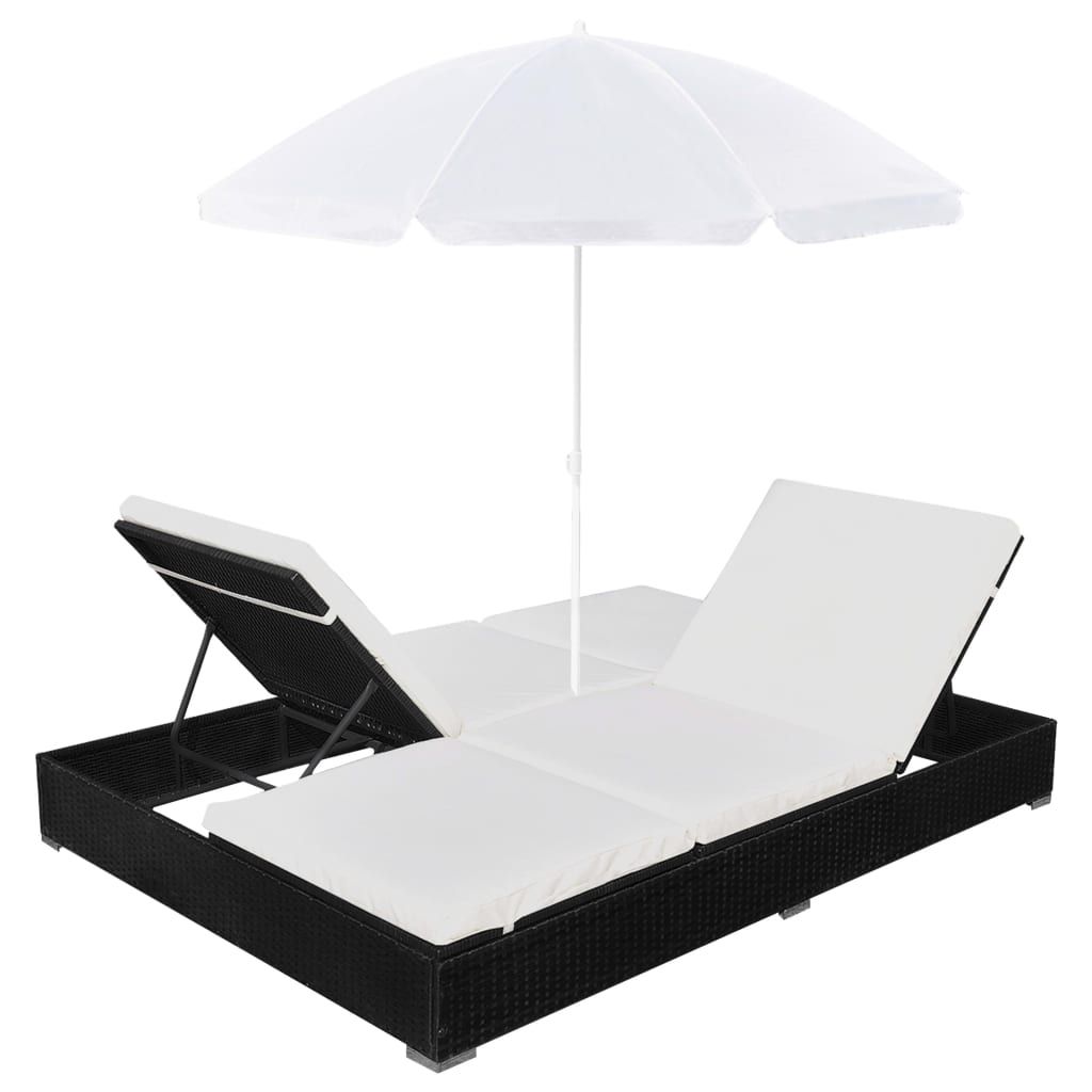 Leżak ogrodowy z parasolem, polirattan, czarny