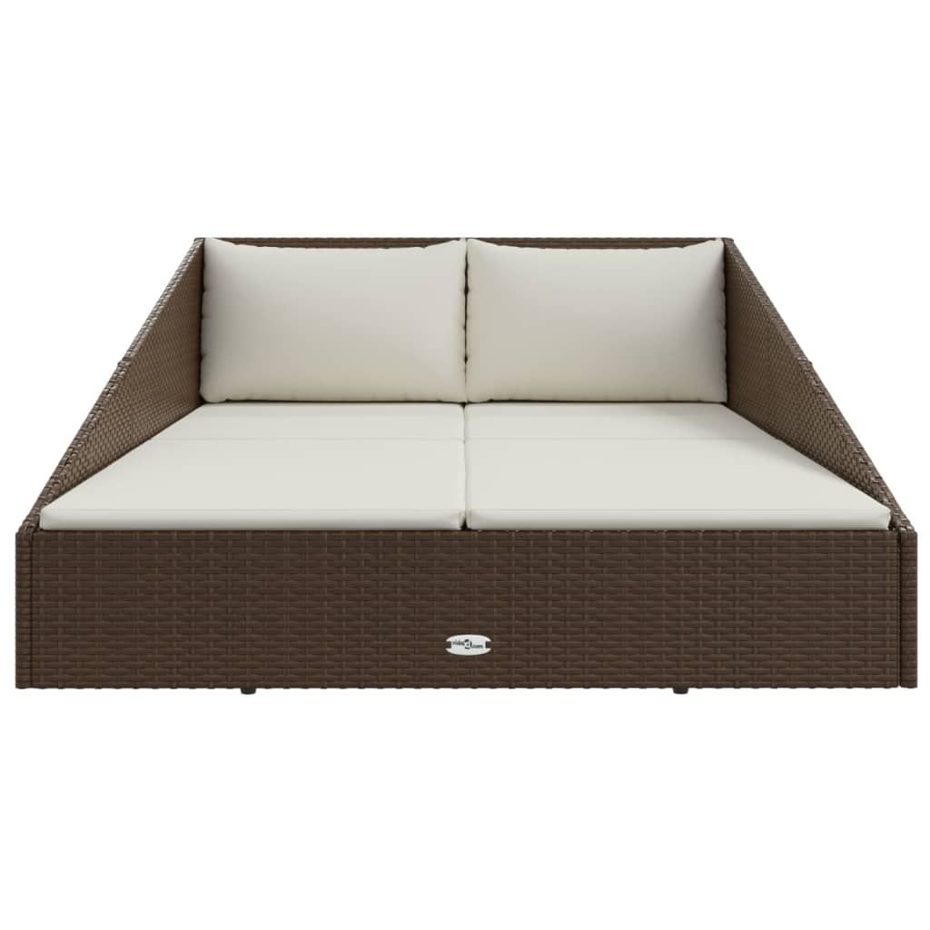 Leżanka ogrodowa, brązowa, 201×139 cm, rattan PE
