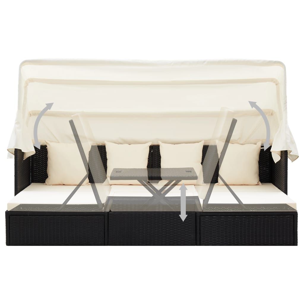 Leżanka ogrodowa z daszkiem, czarna, rattan PE
