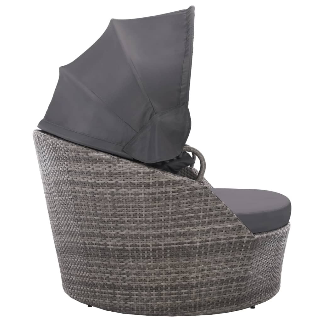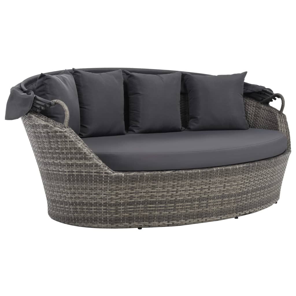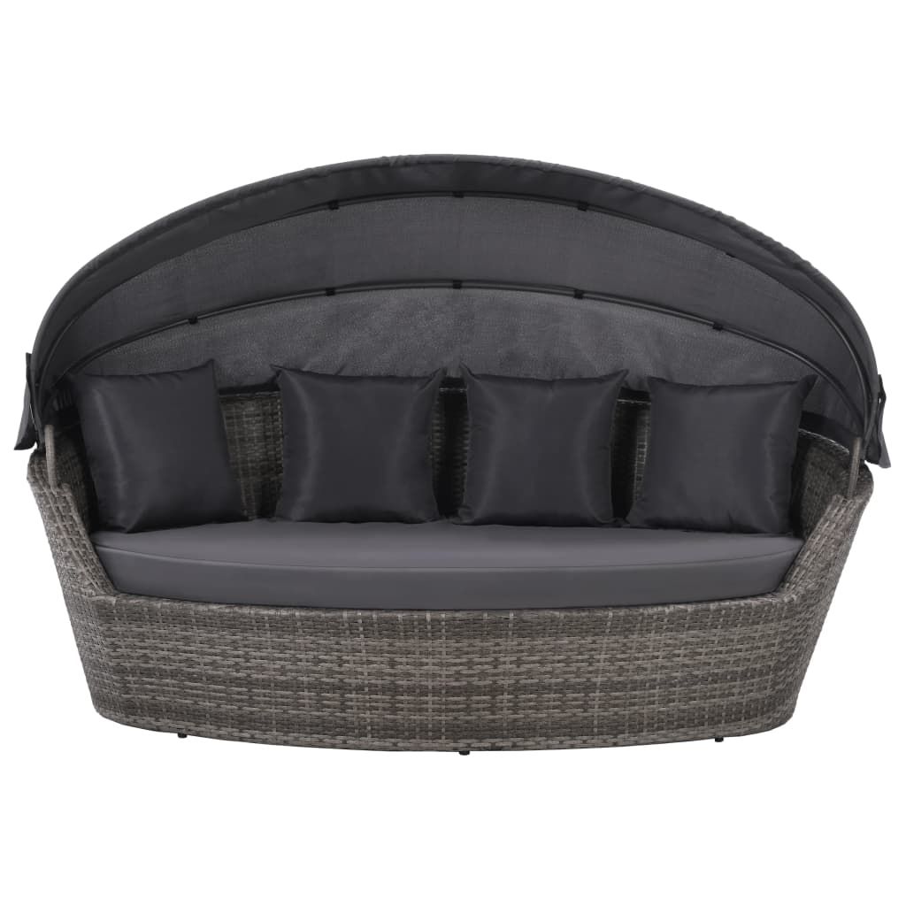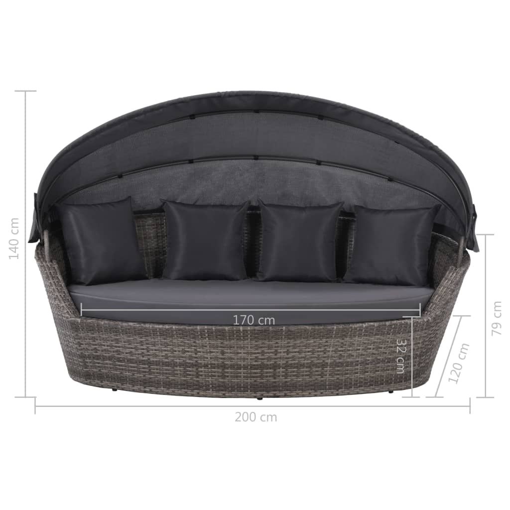 Leżanka ogrodowa z zadaszeniem, szara, 200×120 cm, rattan PE