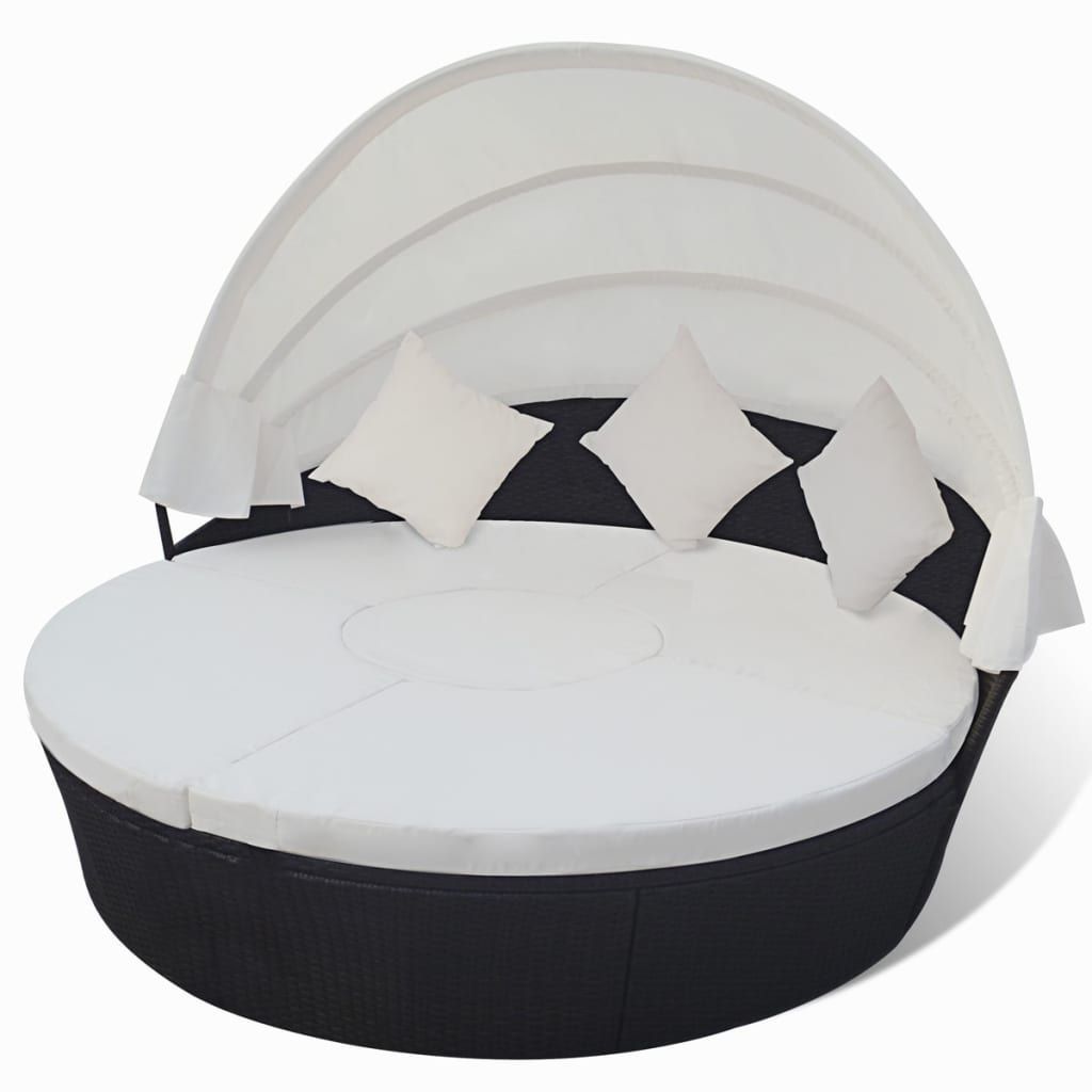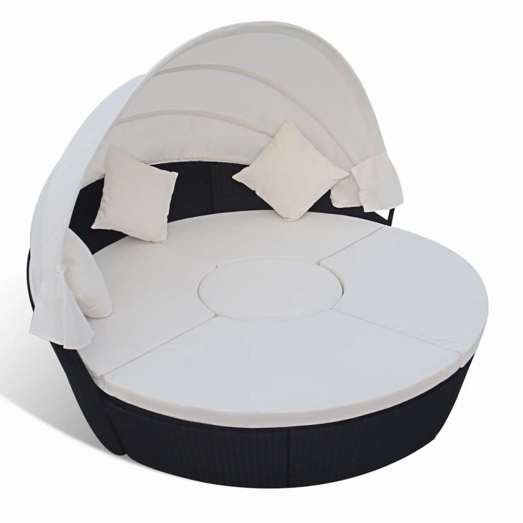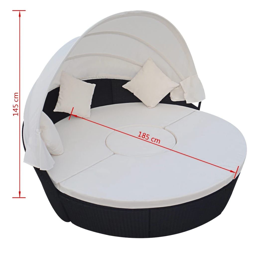 Łóżko ogrodowe z baldachimem, polirattan, czarne