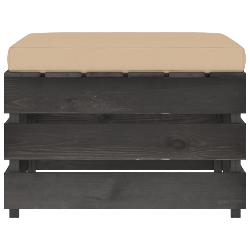 Modułowy stołek z poduszką, impregnowane na szaro drewno