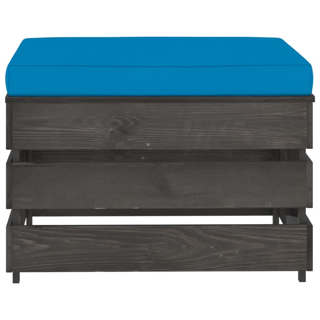Modułowy stołek z poduszką, impregnowane na szaro drewno