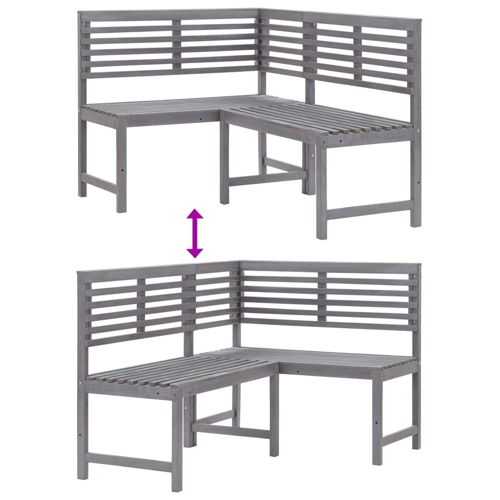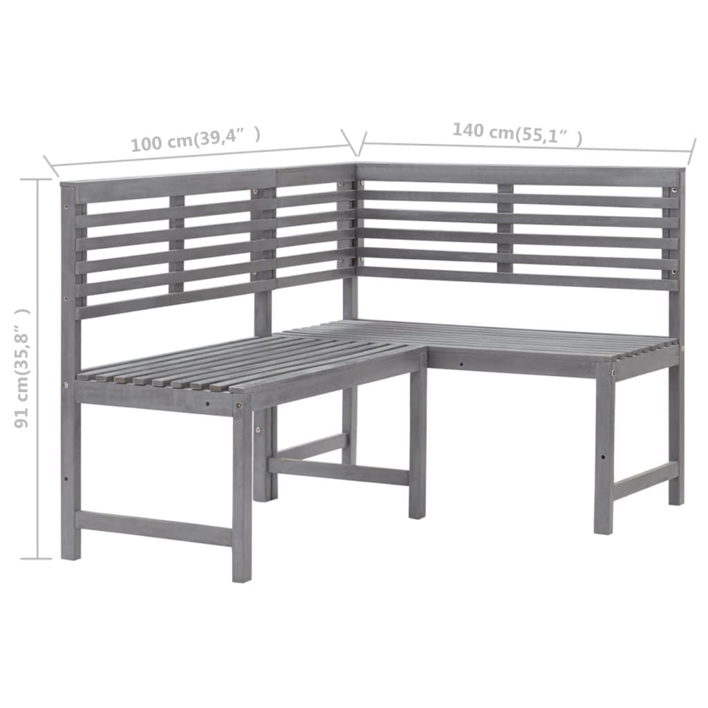 Narożna ławka ogrodowa, szara, 140 cm, lite drewno akacjowe