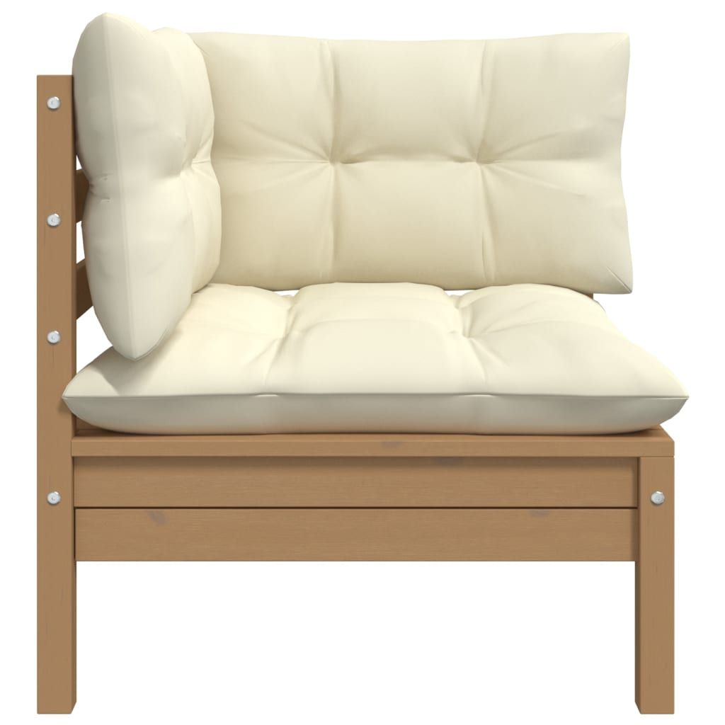 Narożna sofa z poduszkami do ogrodu, miodowy brąz, lita sosna
