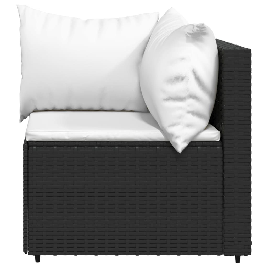 Narożny moduł sofy z poduszkami, czarny, polirattan