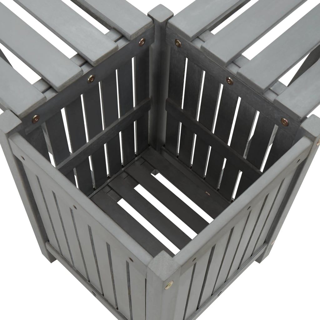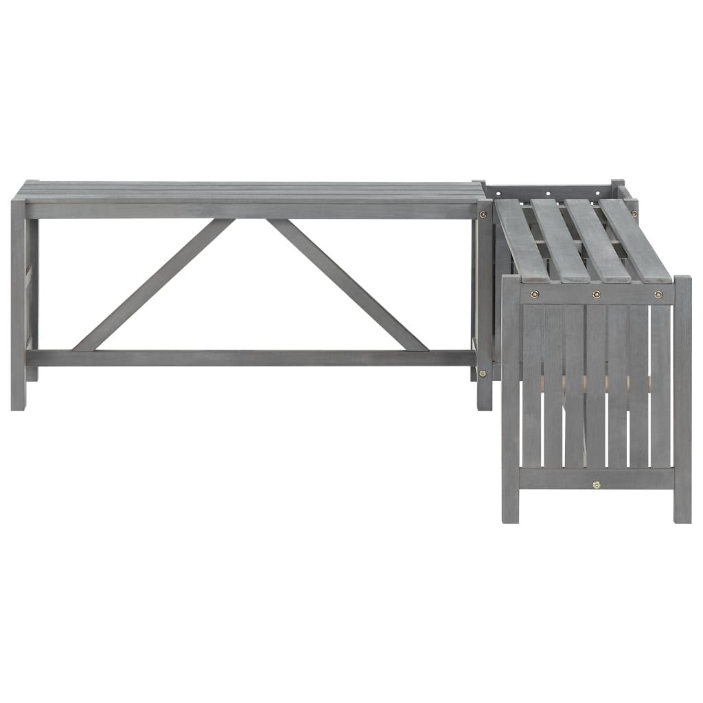 Ogrodowa ławka narożna z donicą, 117 cm, drewno akacjowe, szara