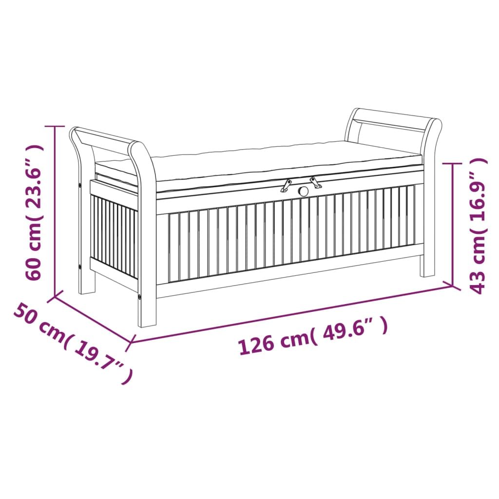 Ogrodowa ławka ze schowkiem i poduszką, 126 cm, drewno akacjowe