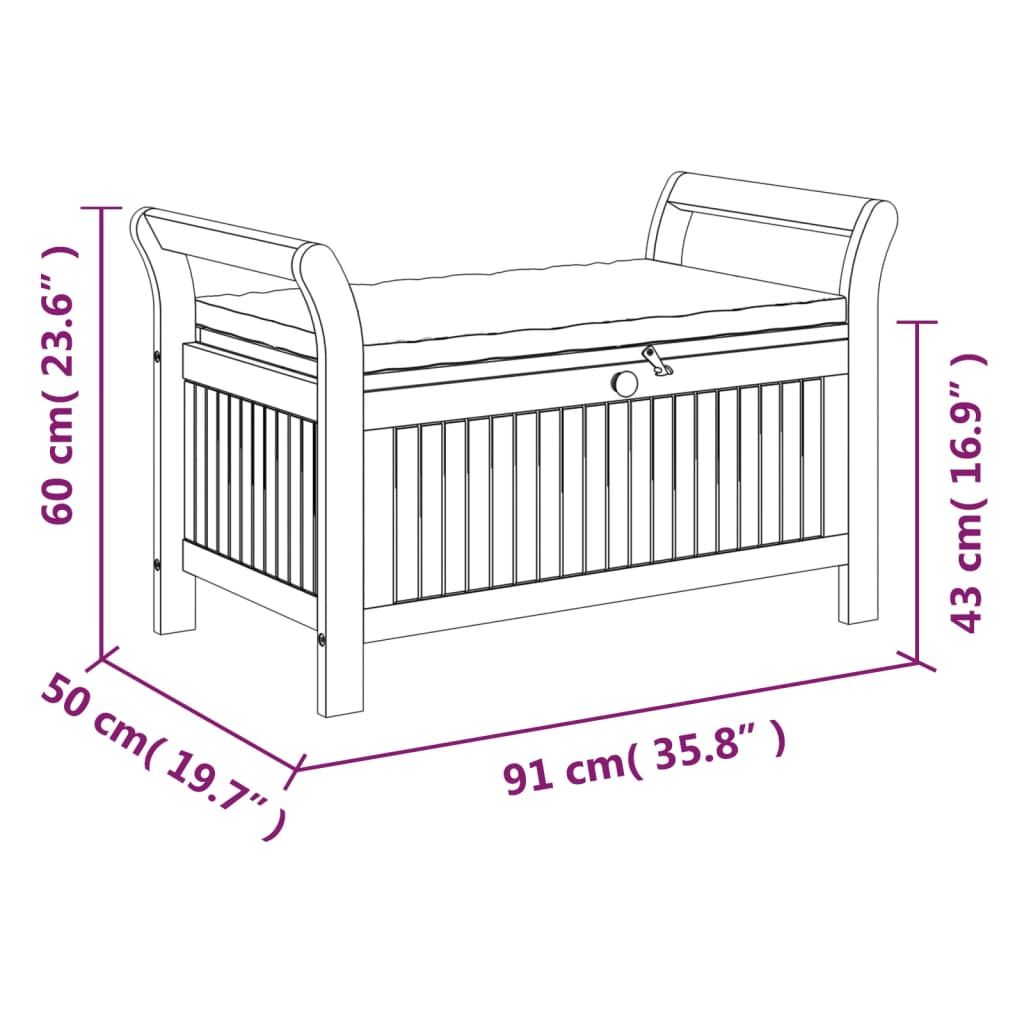 Ogrodowa ławka ze schowkiem i poduszką, 91 cm, drewno akacjowe